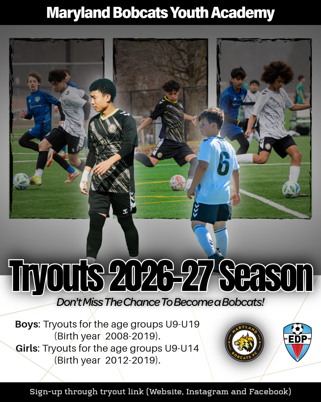 For all other tryout inquiries, please email us at info@marylandbobcatsfc.com and we will gladly discuss alternative ways to try out for one of our teams.